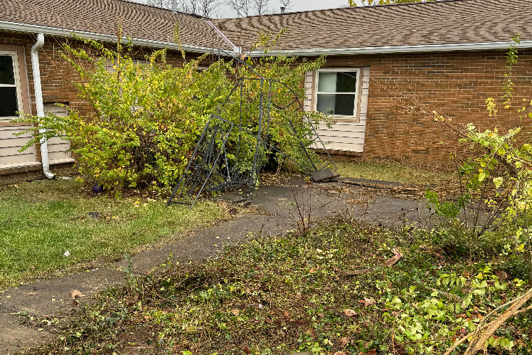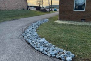 - Importing topsoil, regrading, seeding, and straw application to establish positive drainage