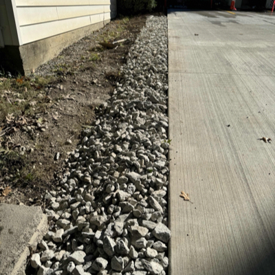 To ensure optimal water management, we installed 304 stone to promote positive drainage toward the rear of the property and the existing catch basin. The catch basin was rebuilt and the drain grate restored to ensure reliable performance during heavy rain events.